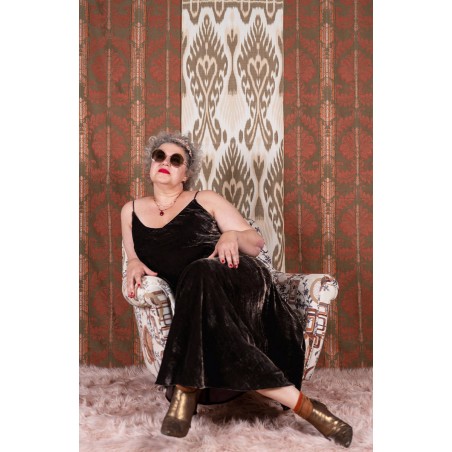 La Hybrid Velvet Perfecta Dress è un abito di velluto morbido e fluido. Il suo nome già la definisce. È un perfetto ibrido tra la Perfecta Sottoveste, di cui ha lo stesso scollo e le stesse spalline sottili e regolabili, il Perfecto Dress, di cui conserva la forma e i volumi della parte sotto, e il Perefctoful Dress, con cui ha in comune l’inserto triangolare sul fondo davanti ispirato agli abiti sartoriali degli anni Venti. È tagliata in sbieco per poter scivolare sulle forme, senza segnarle, è rifinita con i punti a mano. La puoi indossare anche con sotto una sottile t-shirt con le maniche lunghe e sottili nei giorni più freddi. Lei sarà la tua complice prediletta per essere tutte le mille te che sono in te.