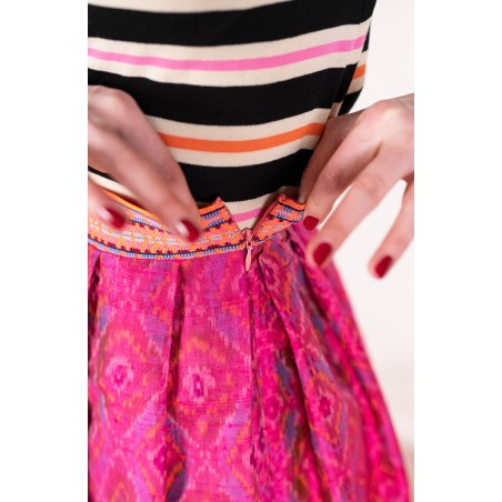 La seta della Gonna Volante è stata acquistata durante un viaggio di ricerca in India.