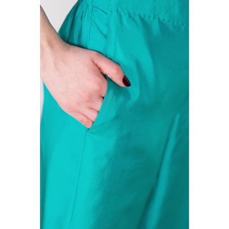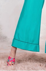 Pantalone svasato in raso di seta lavorato al rovescio. con elastico sul cinturino dietro, piping al fondo e punto a mano a contrasto in vita. Tasche profonde sul fianco. Sottopunti sul fondo fatti a mano. È tra i primissimi pantaloni di Raptus&Rose, ne hanno segnato la storia con le loro cartelle colori, ricettate al grammo. Sono tra i pantaloni più amati: mixabilissimi, con quasi tutto ciò è già nel tuo armadio: maglie, camicie, giacche, t-shirt, cappottini, kimono, stole, sneaker, mocassini, sandali, tacco 12... I Liquid ti faranno perdere la testa. Il movimento del tessuto sulle gambe quando cammini diventerà pura poesia. I tuoi passi manderanno bagliori leggeri. L'idea di avere addosso un tessuto quasi liquido ti farà innamorare.