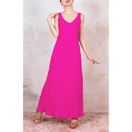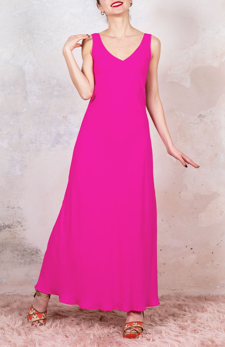 GEORGETTE LONG PERFECTO DRESS - Indian Pink