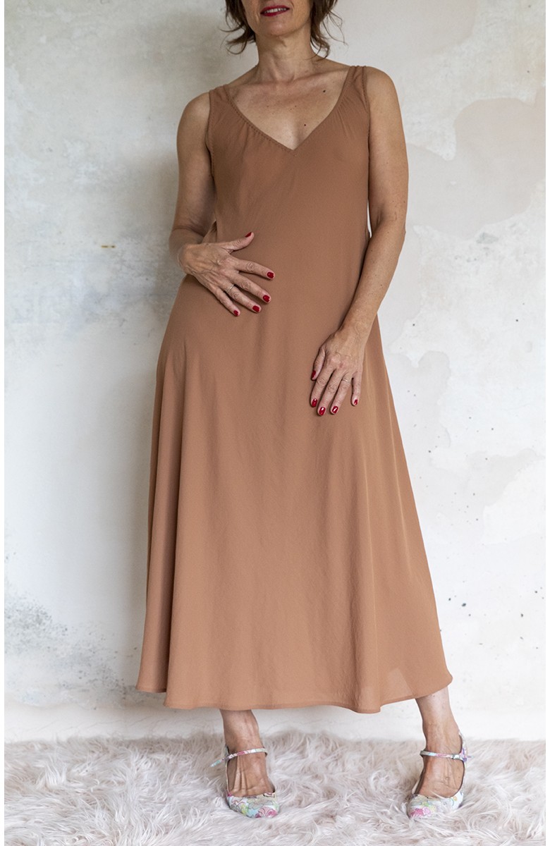 GEORGETTE PERFECTO DRESS - Tabacco Ambivalente