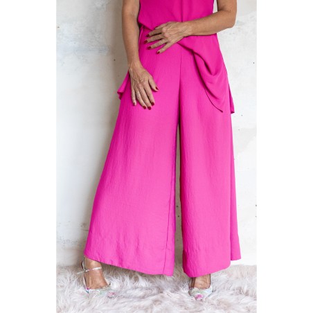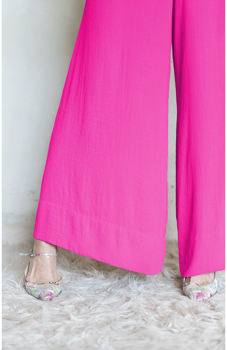 Pantalone palazzo di georgette molto leggero e fluido. Elastico sul cinturino dietro e punti a mano in vita davanti. Tasche profonde sul fianco in cucitura. Bordo alto con sottopunto al fondo. Tinta unita colore INDIAN PINK. Palace Pant fluidi e comodi, ampi e fluttuanti. Leggeri e instropicciabili, sono l' ideale per i tuoi viaggi. Con due tasche profonde dove infilare le mani per entrare in una totale comfort zone, dovunque ti trovi, sempre celebrando bellezza e femminilità.