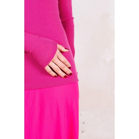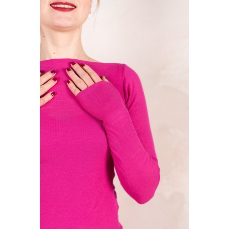 Maglia in jersey di pura e morbida lana merino che rispetta 6 tecnicità specifiche: è zero pilling, è una seconda pelle, è traspirante, è uno stratino perfetto, è termica, è elastica. Con il suo scollo Audrey, le sue maniche lunghissime, la sua consistenza quasi priva di spessore è l’oggetto ideale che risolve il problema di mettere le maniche al Perfecto: perfetta sia sotto che sopra. Ti verrà consegnata dentro il sacchettino di organza di seta tinto nel suo stesso colore. Ed è subito Valigia Perfecta.