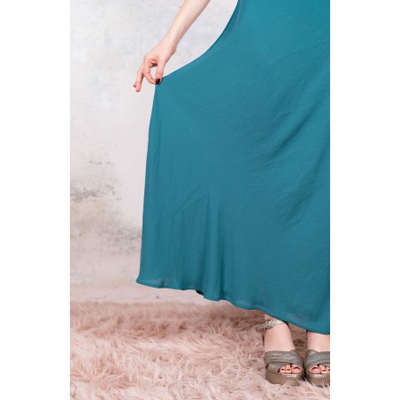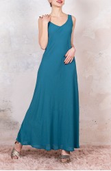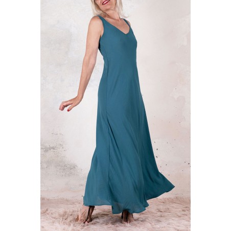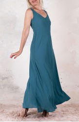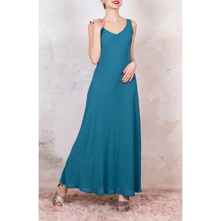 Vestito senza maniche con scollo profondo. Tessuto tagliato in sbiego, profili e fondo rifiniti con punti a mano. E’ la versione long del Perfecto Dress, l'abito perfetto di Raptus&Rose che scivola fluido sul corpo e lo asseconda nei movimenti e nelle forme, perché tagliato in sbieco. La scollatura profonda e sapiente è ultra femminile.