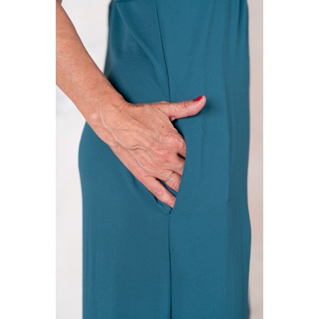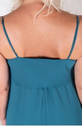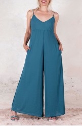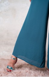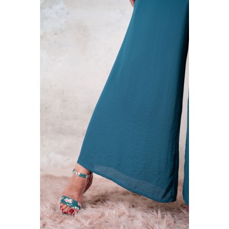 Tuta di georgette molto leggera e fluida. La parte alta è in tagliata in sbiego e ha la tipica forma a sottoveste, con spalline regolabili. La parte sotto è un pantalone palazzo. Zip invisibile sul fianco. Un ibrido perfetto. Una creatura mezza Sottoveste e mezza Palace Pant. Sì perché la Tetuan è una tuta dallo scollo profondo e dalle sottili spalline e improvvisamente si trasforma e diventa fluida e comoda nei fluttuanti e ampi pantaloni, con due tasche profonde dove infilare le mani ed entrare in una totale comfort zone, celebrando la femminilità, sempre.