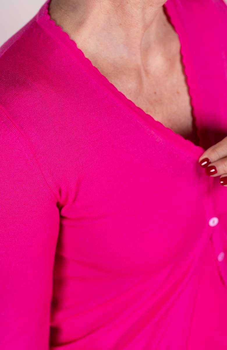 Cardigan 100% lana merino sottile, morbida e calda. Femminile, versatile e ultra comfort.