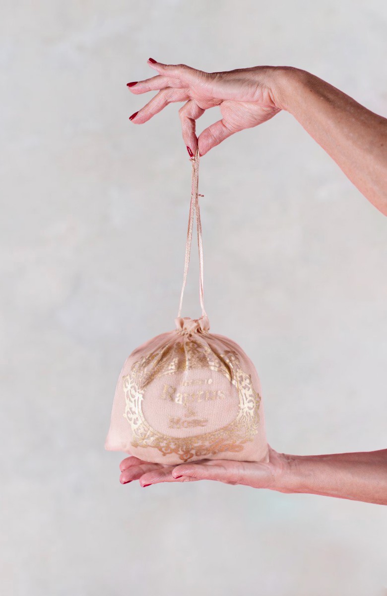 Ti verrà consegnato dentro un sacchettino di organza di seta del suo stesso colore.