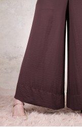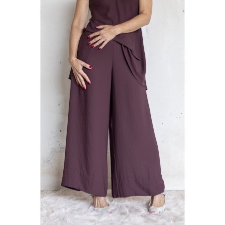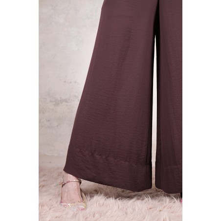 Pantalone palazzo di georgette molto leggero e fluido. Elastico sul cinturino dietro e punti a mano in vita davanti. Tasche profonde sul fianco in cucitura. Bordo alto con sottopunto al fondo. Tinta unita colore chocomelanzana. Palace Pant fluidi e comodi, ampi e fluttuanti. Leggeri e instropicciabili, sono l' ideale per i tuoi viaggi. Con due tasche profonde dove infilare le mani per entrare in una totale comfort zone, dovunque ti trovi, sempre celebrando bellezza e femminilità.