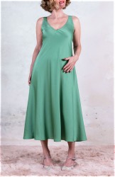 Vestito senza maniche con scollo profondo. Raso tagliato in sbiego, profili rifiniti con punti a mano e fondo tagliato al vivo. E’ l'abito perfetto, scivola fluido e liquido sul corpo e lo asseconda nei movimenti e nelle forme, perché tagliato in sbieco e rifinito con infiniti punti a mano. La scollatura profonda e sapiente è ultra femminile. Pesa pochi grammi. Compagno inseparabile di viaggio, sempre. La versione un po’ più pesante del Perfecto si chiama Nirvana, ed è liquida e lucida. Fluidamente irriverente. Giustamente stropicciata.