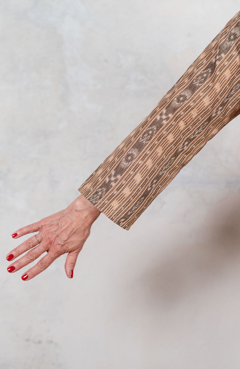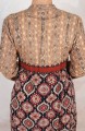 Il cotone del corpino è lavorato con la tecnica di tintura ikat, una delle più antiche al mondo.