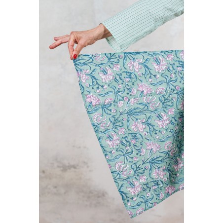 Si tratta di una stampa realizzata con blocchi di legno, intagliati, che vengono immersi nel colore e poi appoggiati sul tessuto per creare il disegno.