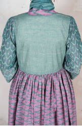 Il Jane Austen Coat nasce da un intero tessuto per sari, ovvero 5 metri di stoffa trasformati in un cappottino; preservando ogni centimetro quadrato del tessuto originale e posizionando ogni porzione con attenzione maniacale sul cartamodello.