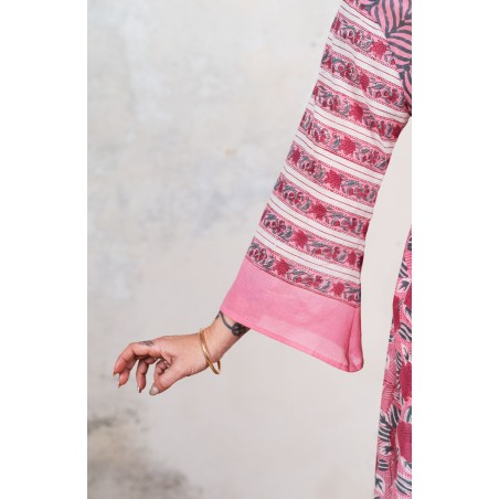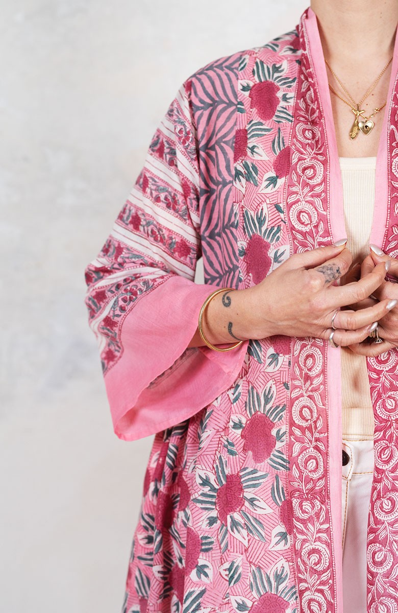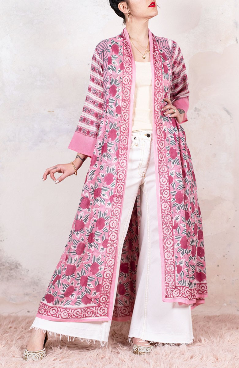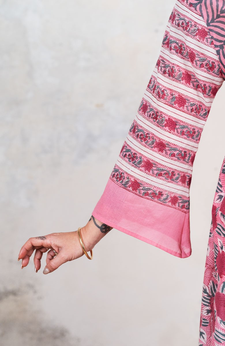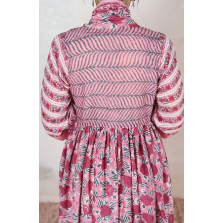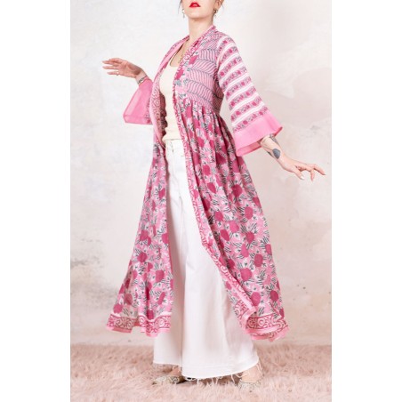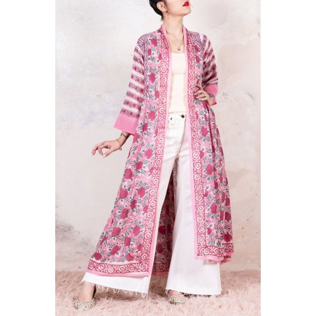 Il cotone di questo cappottino, in particolare, è stato stampato con la tecnica manuale del block printing un’eccellenza indiana.