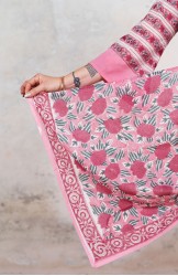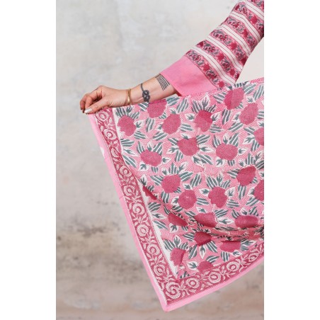 Si tratta di una stampa realizzata con blocchi di legno, intagliati, che vengono immersi nel colore e poi appoggiati sul tessuto per creare il disegno.