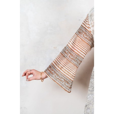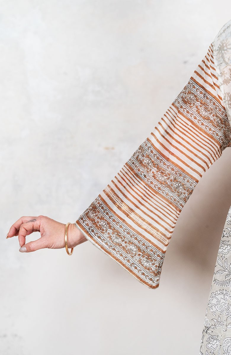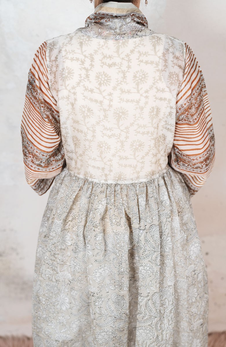 Il cotone di questo cappottino, in particolare, è stato stampato con la tecnica manuale del block printing un’eccellenza indiana.