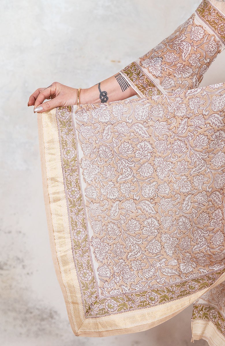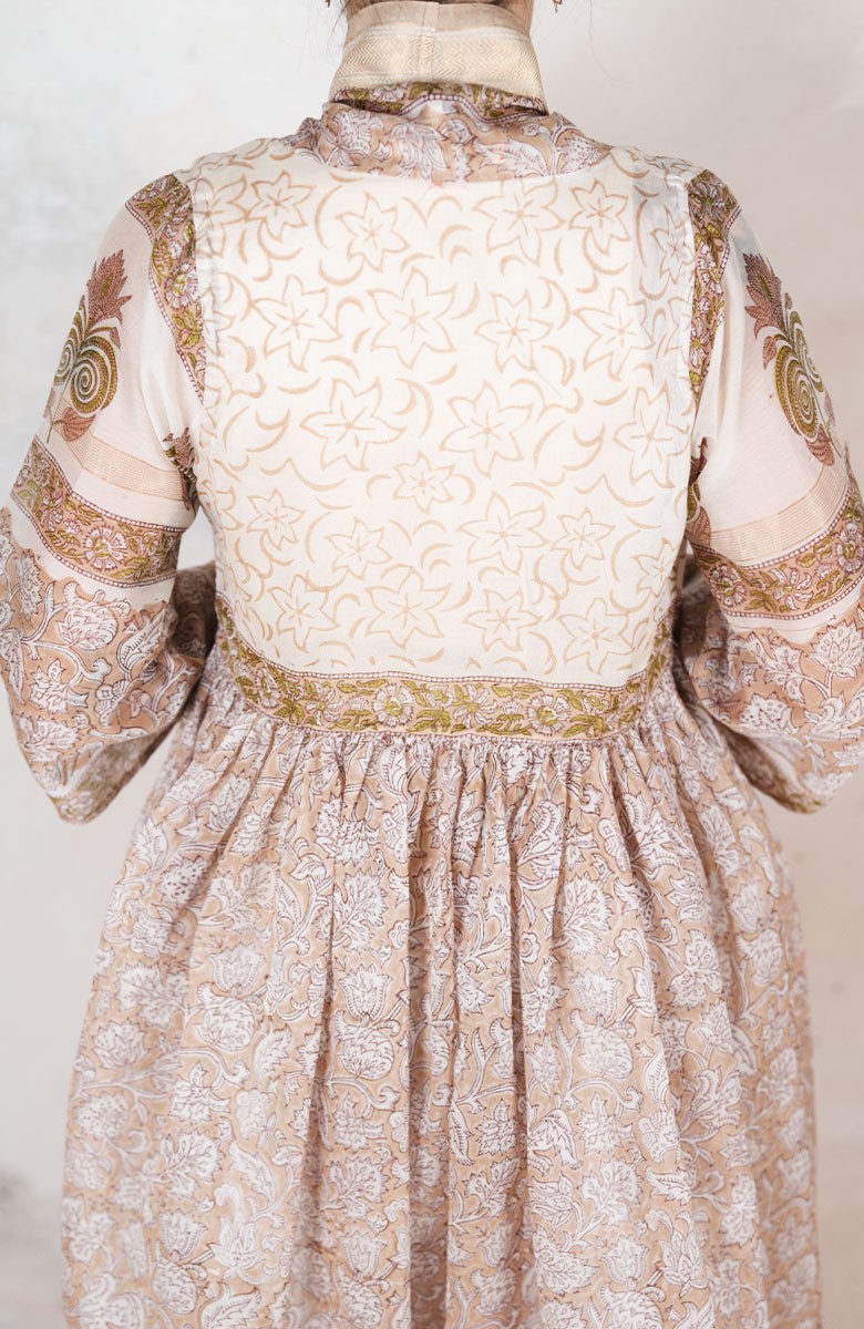 Il cotone di questo cappottino, in particolare, è stato stampato con la tecnica manuale del block printing un’eccellenza indiana.