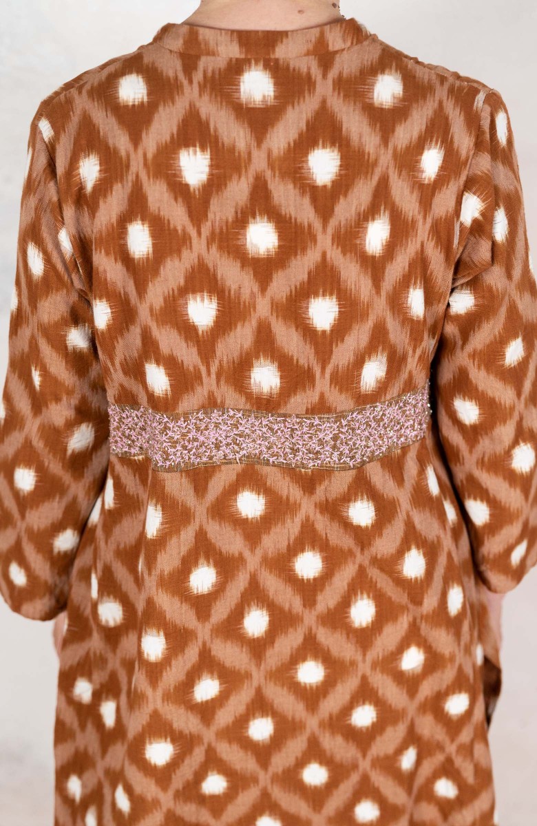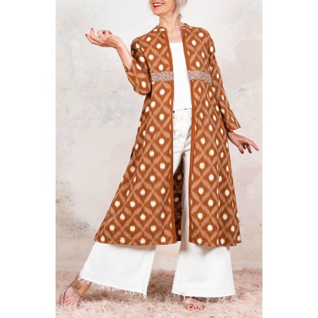 JEWEL BELT LIGHT COAT - Ikat BiancoTabacco