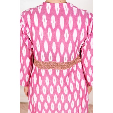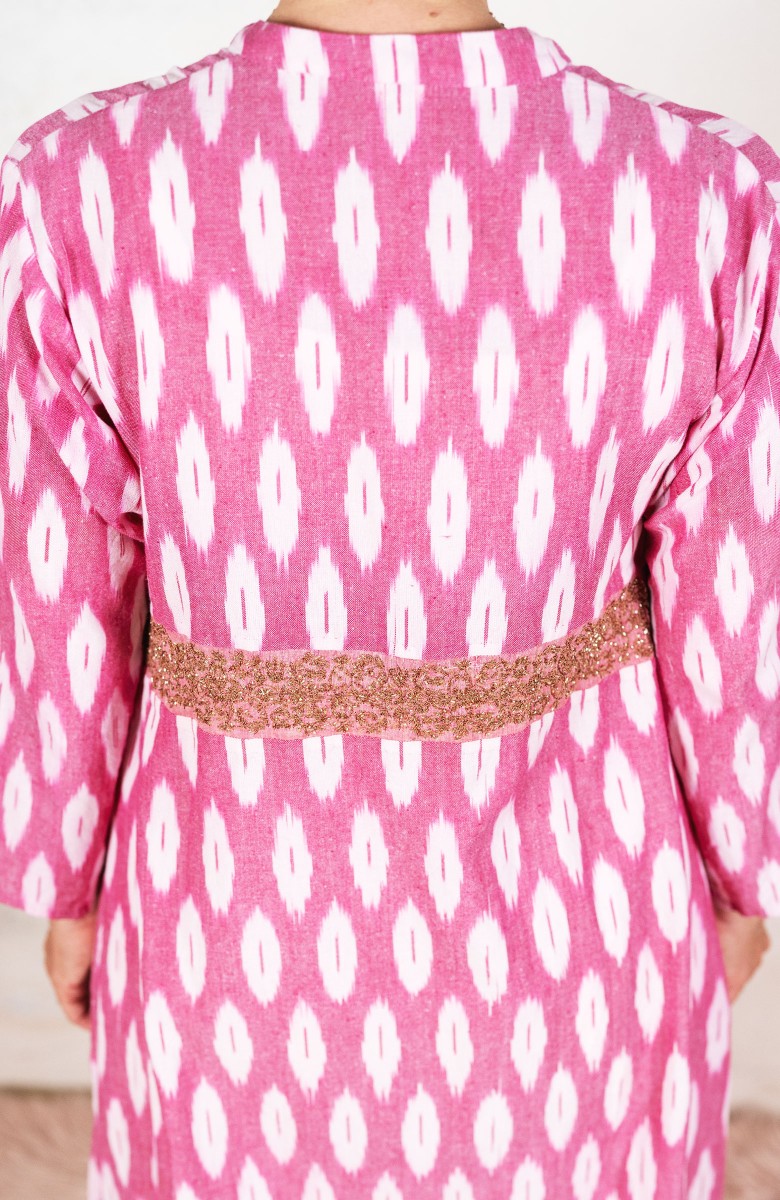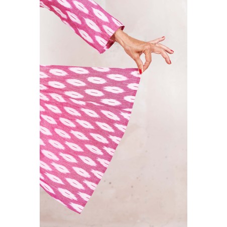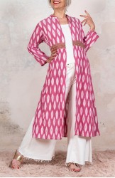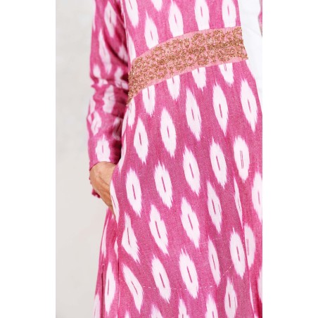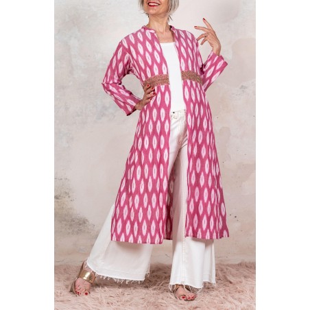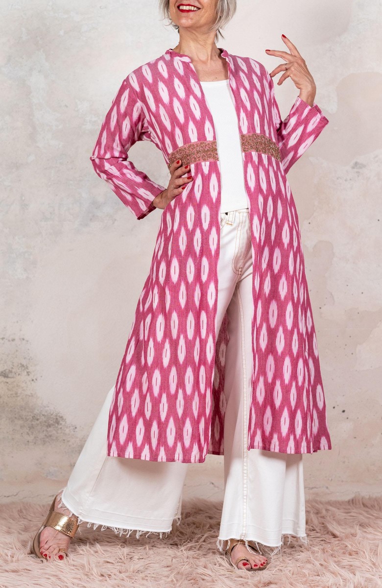 Ricamo e tintura ikat: sono le salienze eccellenti di questo cappottino leggero, ossimoro indossabile, (sur)reale alleato nei giorni caldi. (ma lo indosserai anche in autunno e in primavera)