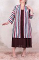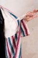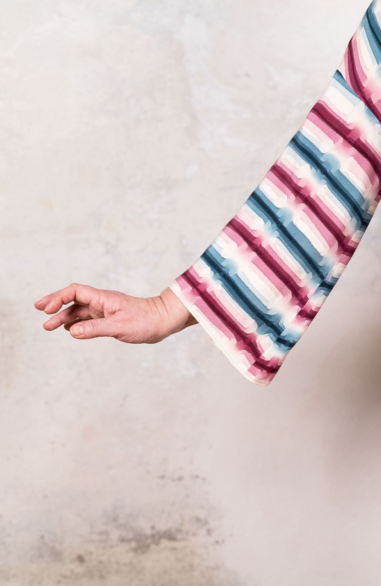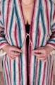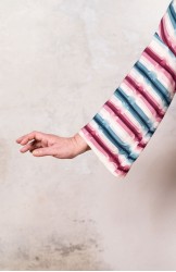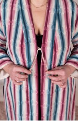 Ibrido magnifico tra Oriente ed Occidente. Cappottino nella più pura tradizione Raptus, con dentro tutta la storia di un Haori autentico. Un piccolo miracolo sartoriale ottenuto con il posizionamento del cartamodello tutto Raptus sull’haori e salvando ogni dettaglio: dal tessuto tolto da una parte delle maniche originali e usato per fare il sacco tasca del nuovo European Haori, alla seta del rivestimento interno. E chilometri di punti a mano. Anche la chiusura dell’European Kimono è un delicato inchino all’Oriente: gli Himo, i laccetti applicati e intercambiabili, sono tutti autentici e sono indossati dalle donne giapponesi come gioielli. L’interno è una sorpresa poetica di seta - nella filosofia giapponese, la Bellezza nascosta è quella più preziosa, da proteggere.