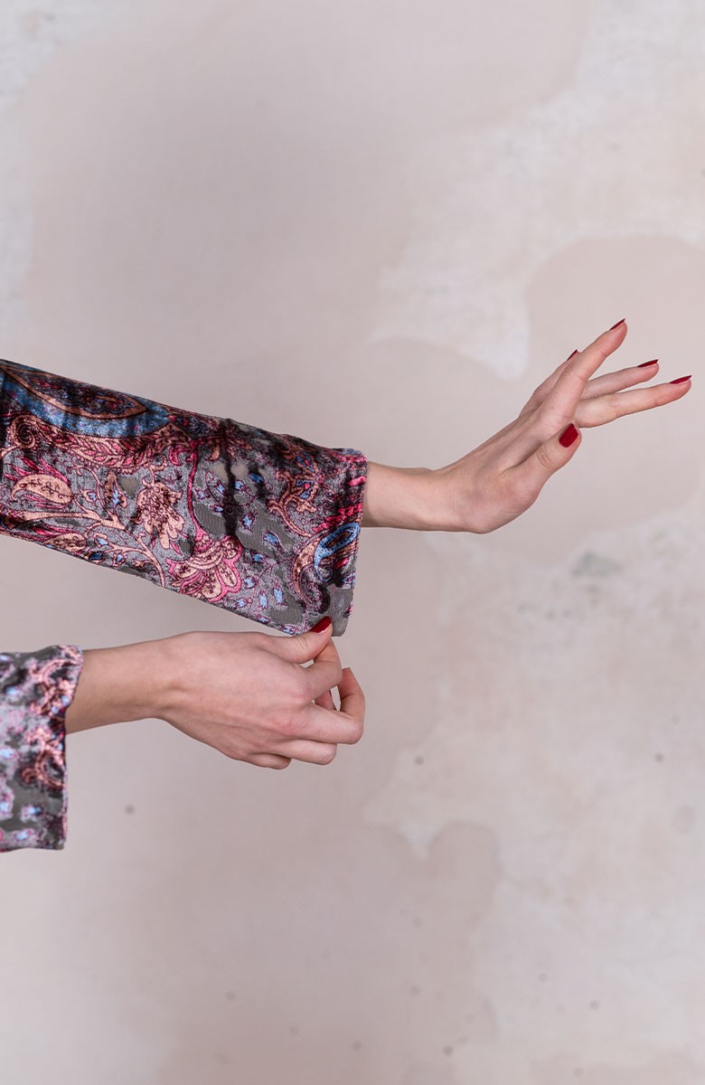 Il tessuto devoré è stato acquistato in un negozio di New Dehli.