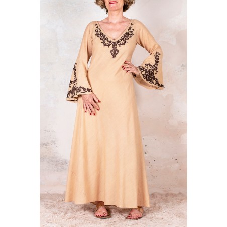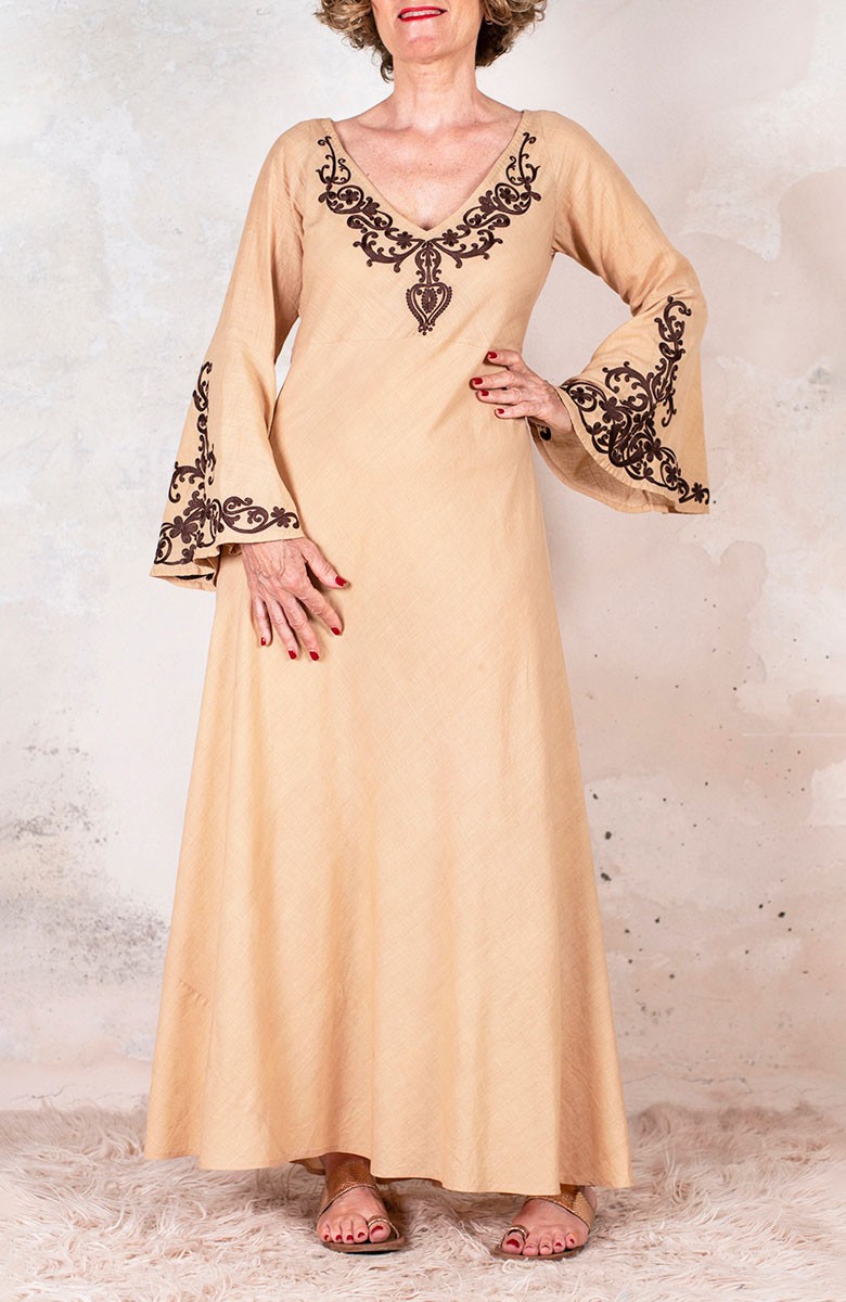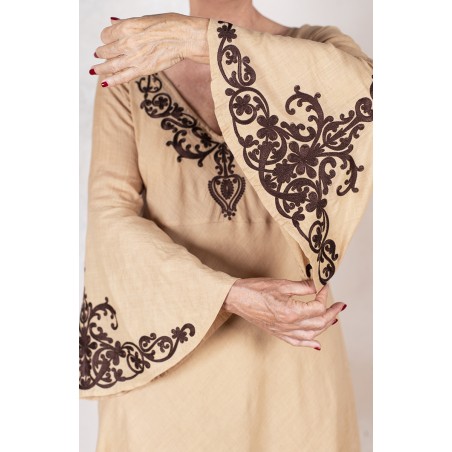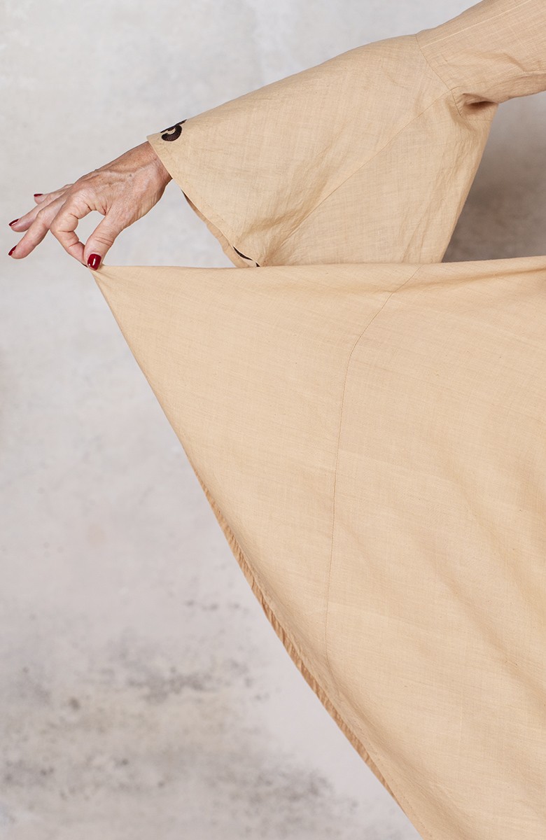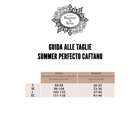 Caftano in cotone khadi ricamato lungo lo scollo, sia davanti che dietro, e sul fondo maniche. I ricami sono ispirati a quelli di un’antica giacca armena. Il cartamodello del Summer Perfecto Caftano nasce da quello del Perfecto Dress, di cui ha la stessa vestibilità. Il tessuto del corpo è tagliato in sbieco, mentre per le maniche a trombetta il taglio è a dritto filo. I profili e il fondo sono rifiniti con i punti a mano. Lui è il caftano che si appoggia alle tue forme senza segnarle, con cui abiterai con leggerezza e femminilità il tuo tempo estivo e che metterai in valigia, qualsiasi sia la tua destinazione. Per scegliere la tua taglia fai riferimento alla tabella taglie qui sotto riportata.
