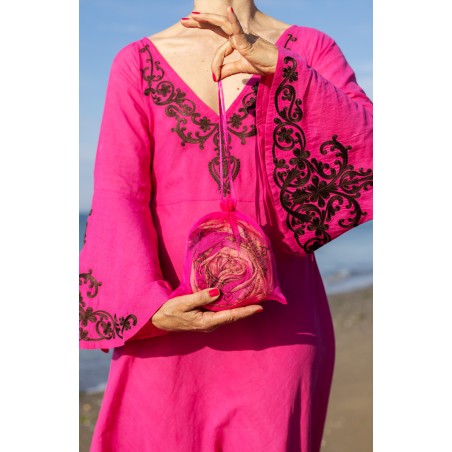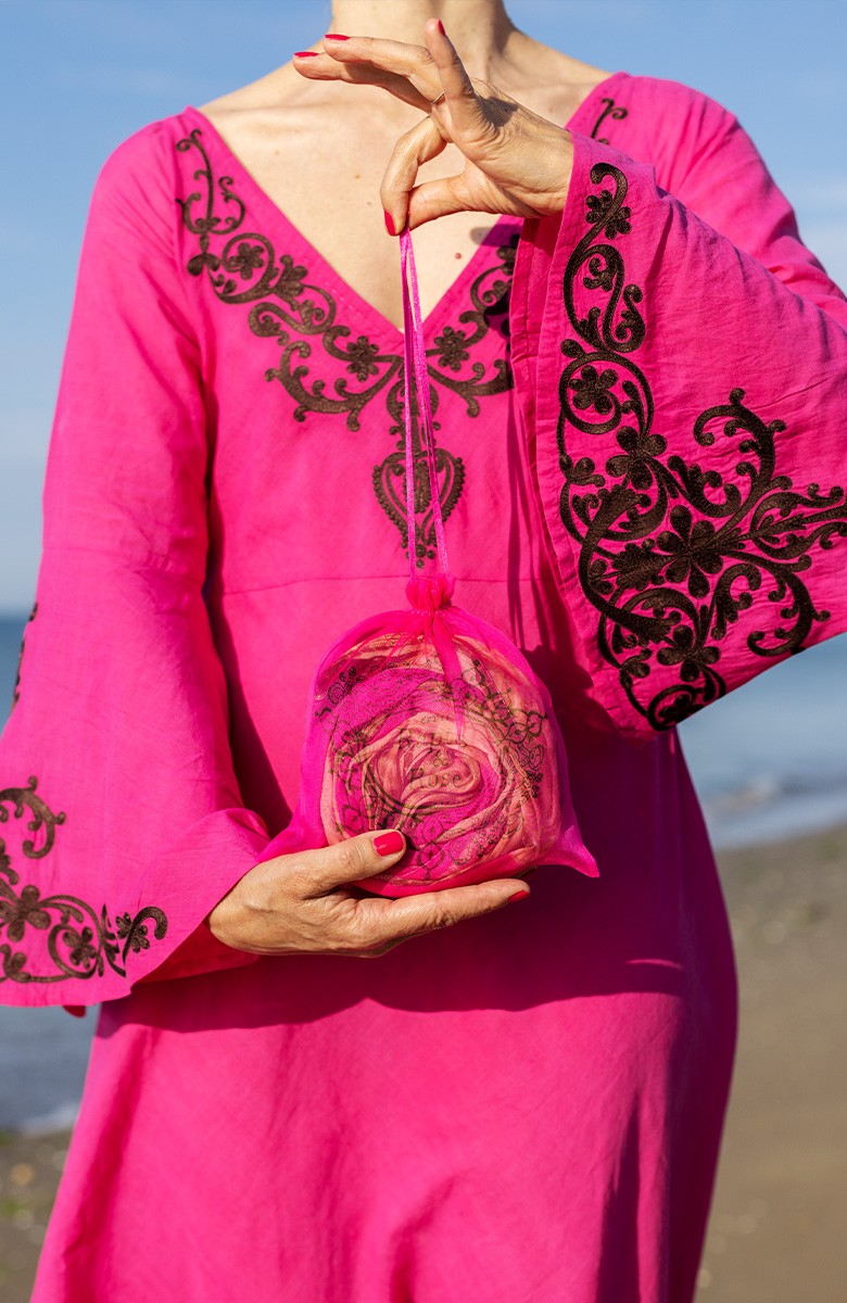 La Summer Dupatta, il cui nome trae origine dal pezzo di tessuto rettangolare di dimensioni variabili, simile a una sciarpa che viene tradizionalmente indossato dalle donne indiane - è pareo e pashmina al contempo, di sottilissima, morbida eppure resistente, mussola con mano organzata, tinta a mano con la tecnica del Tie&Dye. A mano sono anche annodate le sue frange, mentre i bordi della cimosa sono impreziositi da dettagli in lurex. La metti intorno alla vita e diventa un pareo, la metti intorno alle spalle e al collo e diventa pashmina irrinunciabile, la avvolgi tra i capelli e diventa turbante. Insomma, l’oggetto irrinunciabile in qualsiasi valigia, anche perché arriverà da te annodata e dentro il suo sacchetto di organza. Misure: circa 225x80 cm.