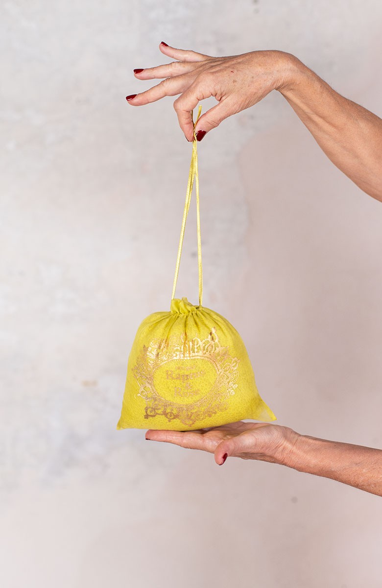 Ti verrà consegnato dentro un sacchettino di organza di seta del suo stesso colore.