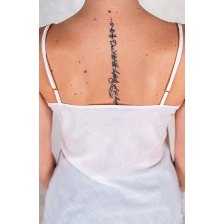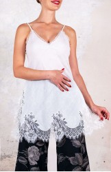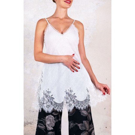 Sottoveste in leggerissimo Kadhi indiano, ha spalline sottili e regolabili e il pizzo posizionato in impeccabile simmetria lungo lo scollo, il fondo e gli spacchi laterali. Prezioso e completamente incrostato. L’incrosto è una lenta tecnica sartoriale grazie alla quale di 2 tessuti ne viene realizzato un terzo: il pizzo non viene banalmente applicato, ma è come se fosse innestato nel tessuto. Tra il pizzo e il tessuto esiste solo lo spessore minimale della cucitura. È tagliata in sbieco per poter scivolare sulle forme, senza segnarle, e rifinita con i punti a mano ed ha tre piccole nervature tra i seni, omaggio alla sartoria del passato. La riceverai dentro il sacchettino di organza nel suo stesso colore.