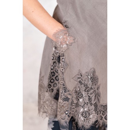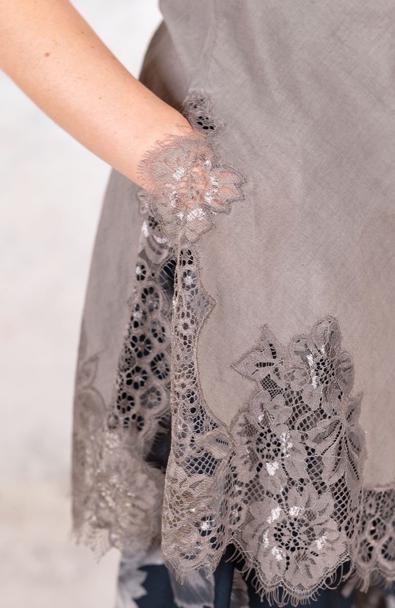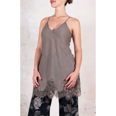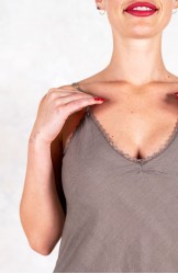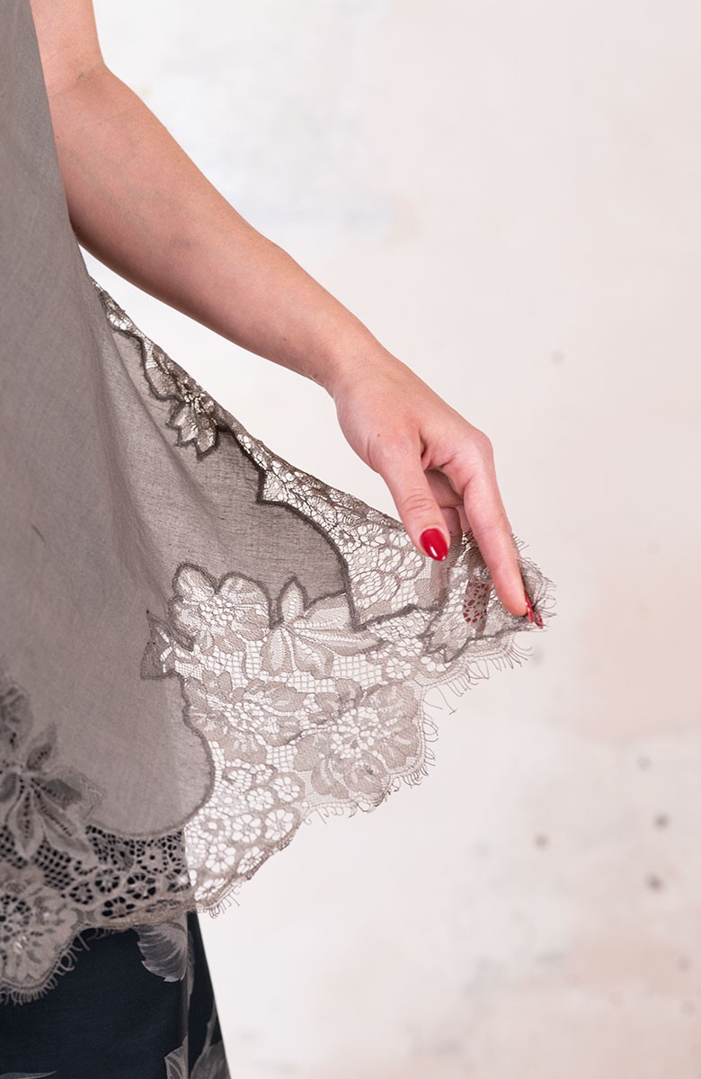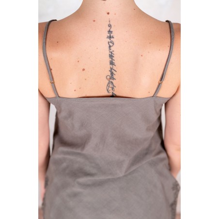 Sottoveste in leggerissimo Kadhi indiano, ha spalline sottili e regolabili e il pizzo posizionato in impeccabile simmetria lungo lo scollo, il fondo e gli spacchi laterali. Prezioso e completamente incrostato. L’incrosto è una lenta tecnica sartoriale grazie alla quale di 2 tessuti ne viene realizzato un terzo: il pizzo non viene banalmente applicato, ma è come se fosse innestato nel tessuto. Tra il pizzo e il tessuto esiste solo lo spessore minimale della cucitura. È tagliata in sbieco per poter scivolare sulle forme, senza segnarle, e rifinita con i punti a mano ed ha tre piccole nervature tra i seni, omaggio alla sartoria del passato. La riceverai dentro il sacchettino di organza nel suo stesso colore.