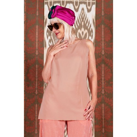 Top di seta, tinto a mano nei colori Raptus, frutto di ricerca appassionata. Il Double Travel Top ha una doppia vita: da una parte è lucido e luminoso, dall'altra opaco. Spacchi sui fianchi, cimosa al fondo e profili rifiniti tutti a mano. Dalla parte lucida i profili opachi sono rifiniti a vista.