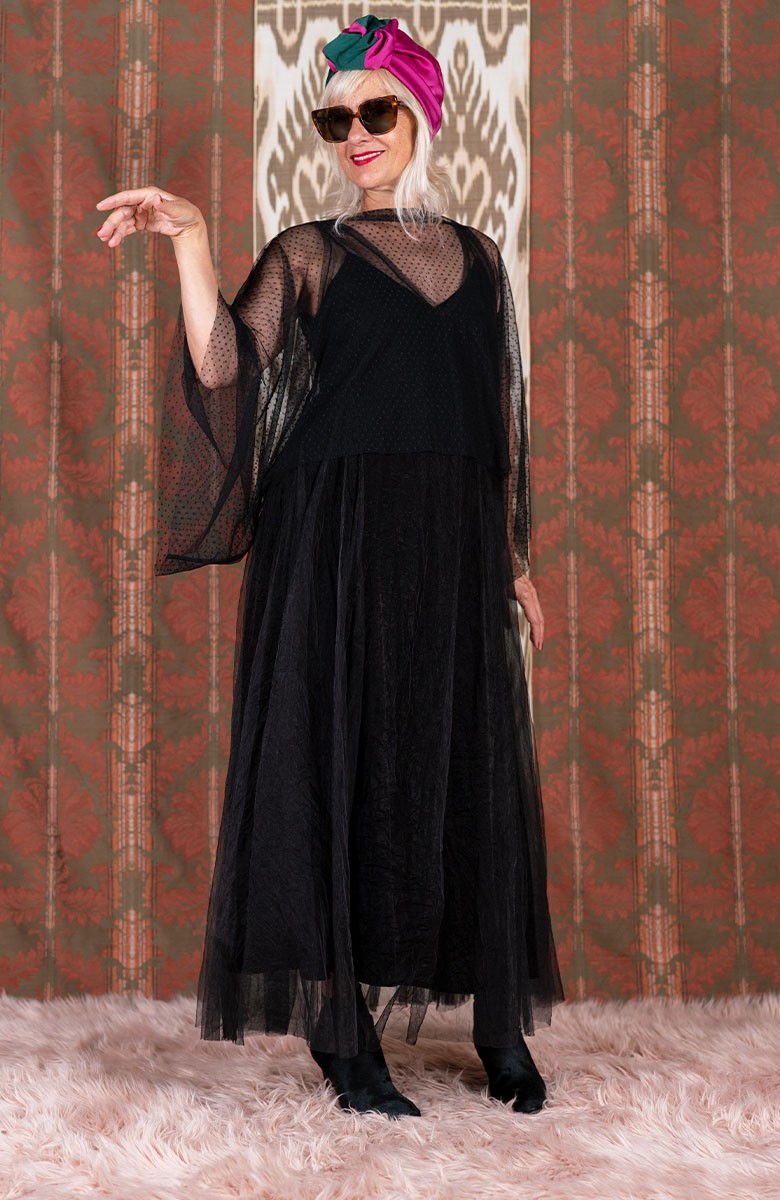 Svuotare un abito da sera, conservarne il volume, ma renderlo indossabile in ogni momento della giornata. Togliere la pesantezza ad un abito da sera, conservarne l’allure, ma renderlo tascabile per poterlo mettere in valigia e indossarlo ovunque. E consegnartelo dentro un minuscolo sacchettino di organza. È come liberarsi di un corsetto: quello che costringeva le donne prima degli Anni ‘20 del secolo scorso. Lo Zelda Pocket Party Dress è questo: un abito da sera tascabile, ma anche da giorno, da mettere sopra a tutto, anche ad un paio di jeans – figuriamoci sopra il Perfecto Dress – ispirato a Zelda Sayre Fitzgerald, donna irriverente e spregiudicata, considerata una protofemminista, vera icona di quei rivoluzionari Anni Ruggenti. In impalpabile e morbido tulle nero, è il PPD dalle scollature profonde, sia davanti che dietro; scollature che allungano e alleggeriscono la silhouette e che possono essere armonizzate su ogni forma del corpo semplicemente annodando alla larghezza desiderata il laccetto cucito sulla scollatura posteriore. Le cuciture lungo i fianchi sono all’inglese. Sugli scolli e sugli insert, invece, è stata usata la tecnica di cucitura dell’incrosto: piattissima e priva di spessore. Il fondo è tagliato al vivo e rifinito alle estremità con piccoli punti a mano. Sotto le spalline le immancabili asole per tenere fermo il reggiseno. Il PPD non è solo un abito, ma un atteggiamento, un modo di pensare, un’abitudine che non sapevamo di avere.