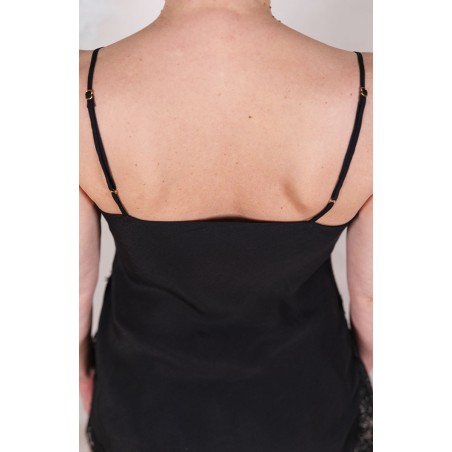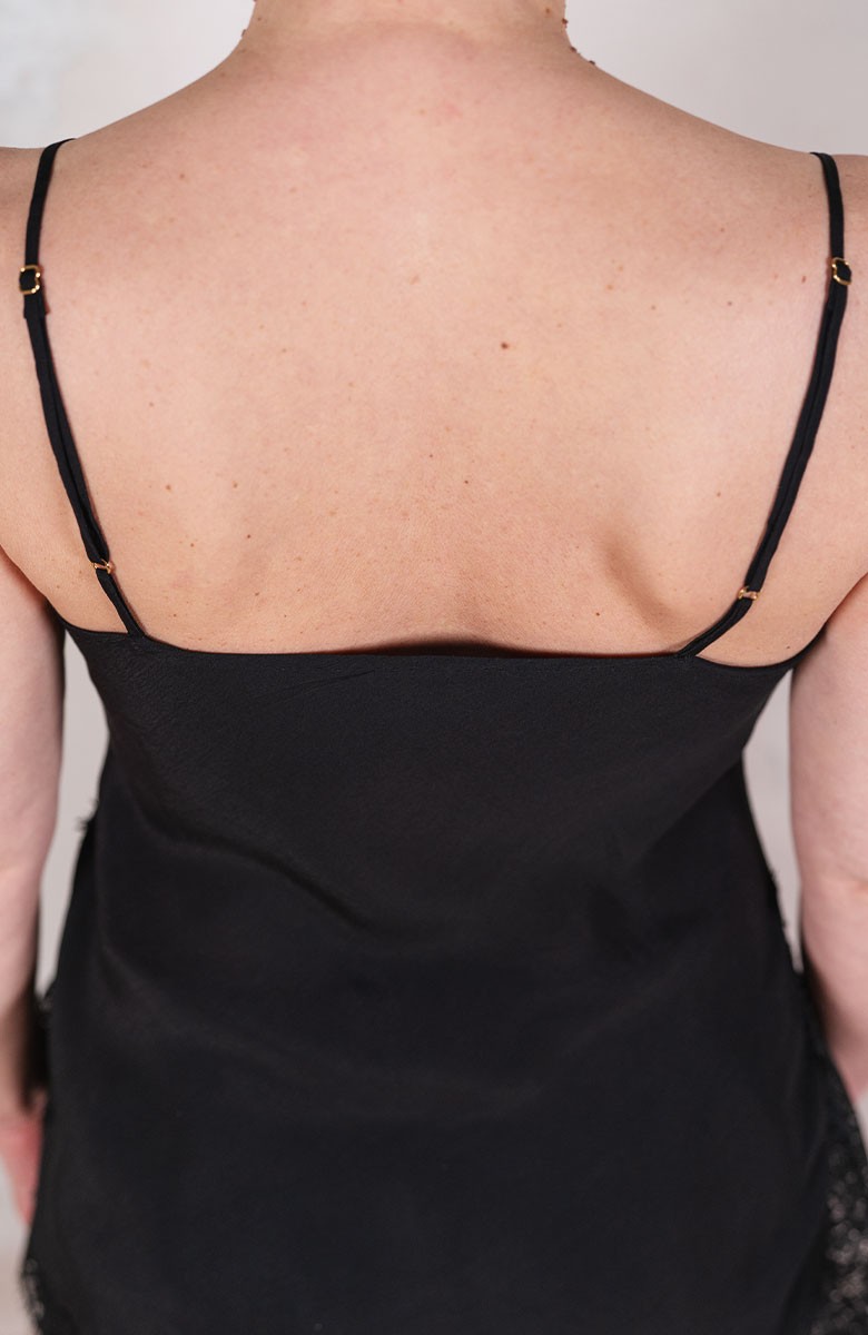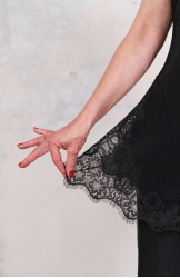 Si chiama sottoveste, eppure la indossi come una t-shirt. Della sottoveste ha le spalline sottili e regolabili, il pizzo posizionato in impeccabile simmetria lungo lo scollo, il fondo e gli spacchi laterali. Prezioso e completamente incrostato. L’incrosto è una lenta tecnica sartoriale grazie alla quale di 2 tessuti ne viene realizzato un terzo: il pizzo non viene banalmente applicato, ma è come se fosse innestato nel tessuto. Tra il pizzo e il tessuto esiste solo lo spessore minimale della cucitura. Il tessuto è crêpe di viscosa, leggerissima, tagliata in sbieco per sfruttare la naturale elasticità del tessuto che scivola così sulle forme, senza segnarle. Per ottenere il crêpe si usano fili ritorti, sottili e compatti, che conferiscono resistenza e una superficie leggermente increspata. Della t-shirt ha la versatilità, la comodità, la facilità. Lei sarà la tua complice prediletta per essere tutte le mille te che sono in te. La riceverai dentro il sacchettino di organza nel suo stesso colore.Composizione e manutenzione
