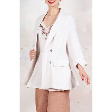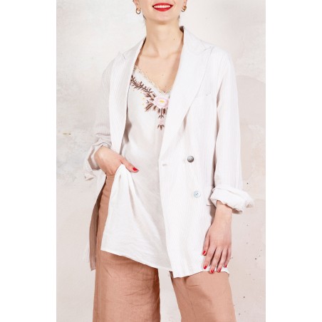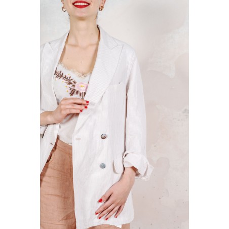 LINEN TRAVEL JACKET - Gessato White in Love