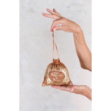Ti verrà consegnato dentro un sacchettino di organza di seta del suo stesso colore.