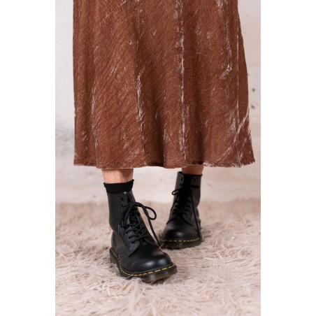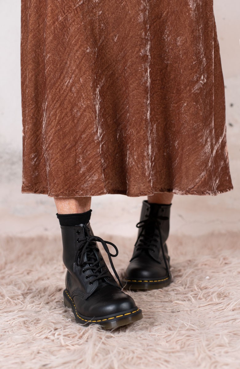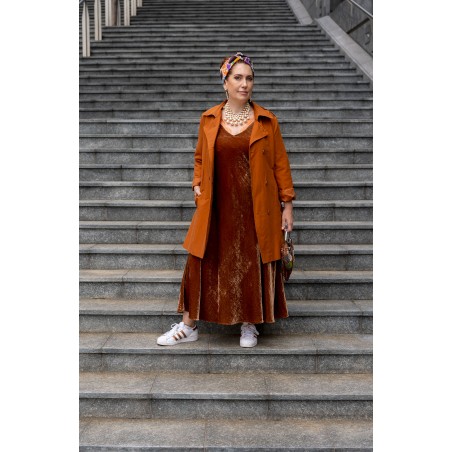 La Hybrid Velvet Perfecta Sottoveste è un abito di velluto morbido e fluido. Il suo nome già la definisce. È un perfetto ibrido tra la Perfecta Sottoveste, di cui ha lo stesso scollo e le stesse spalline sottili e regolabili, il Perfecto Dress, di cui conserva la forma e i volumi della parte sotto, e il Perefctoful Dress, con cui ha in comune l’inserto triangolare sul fondo davanti ispirato agli abiti sartoriali degli anni Venti. È tagliata in sbieco per poter scivolare sulle forme, senza segnarle, è rifinita con i punti a mano. La puoi indossare anche con sotto una sottile t-shirt con le maniche lunghe e sottili nei giorni più freddi. Lei sarà la tua complice prediletta per essere tutte le mille te che sono in te.