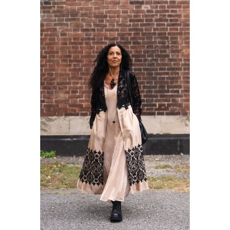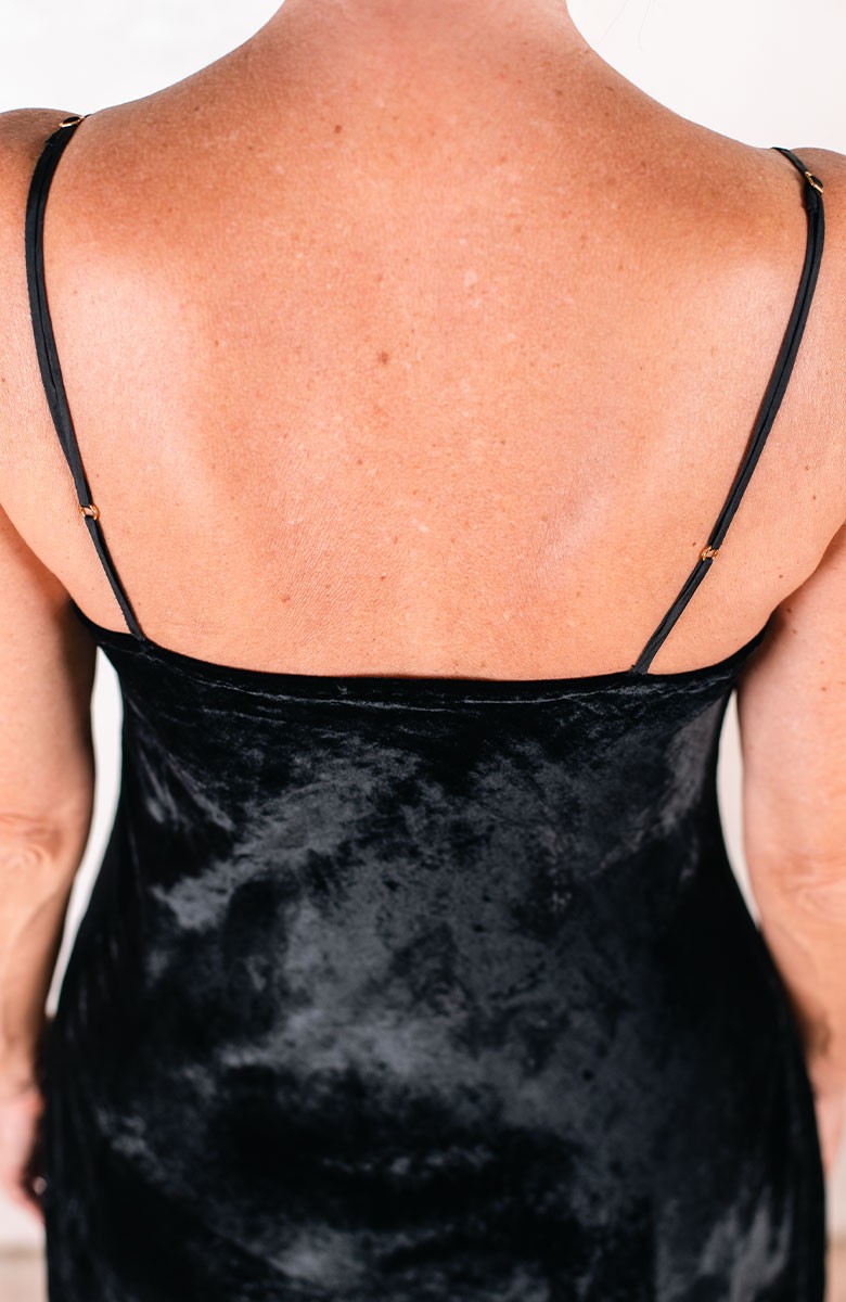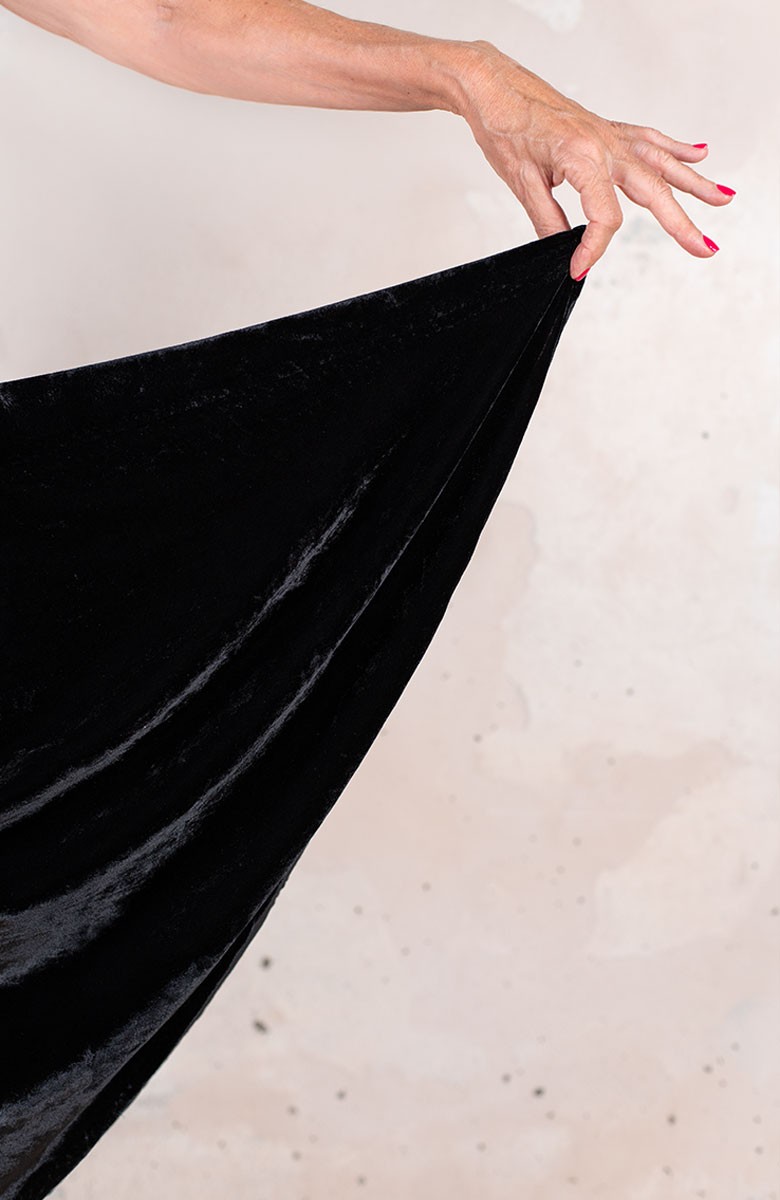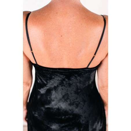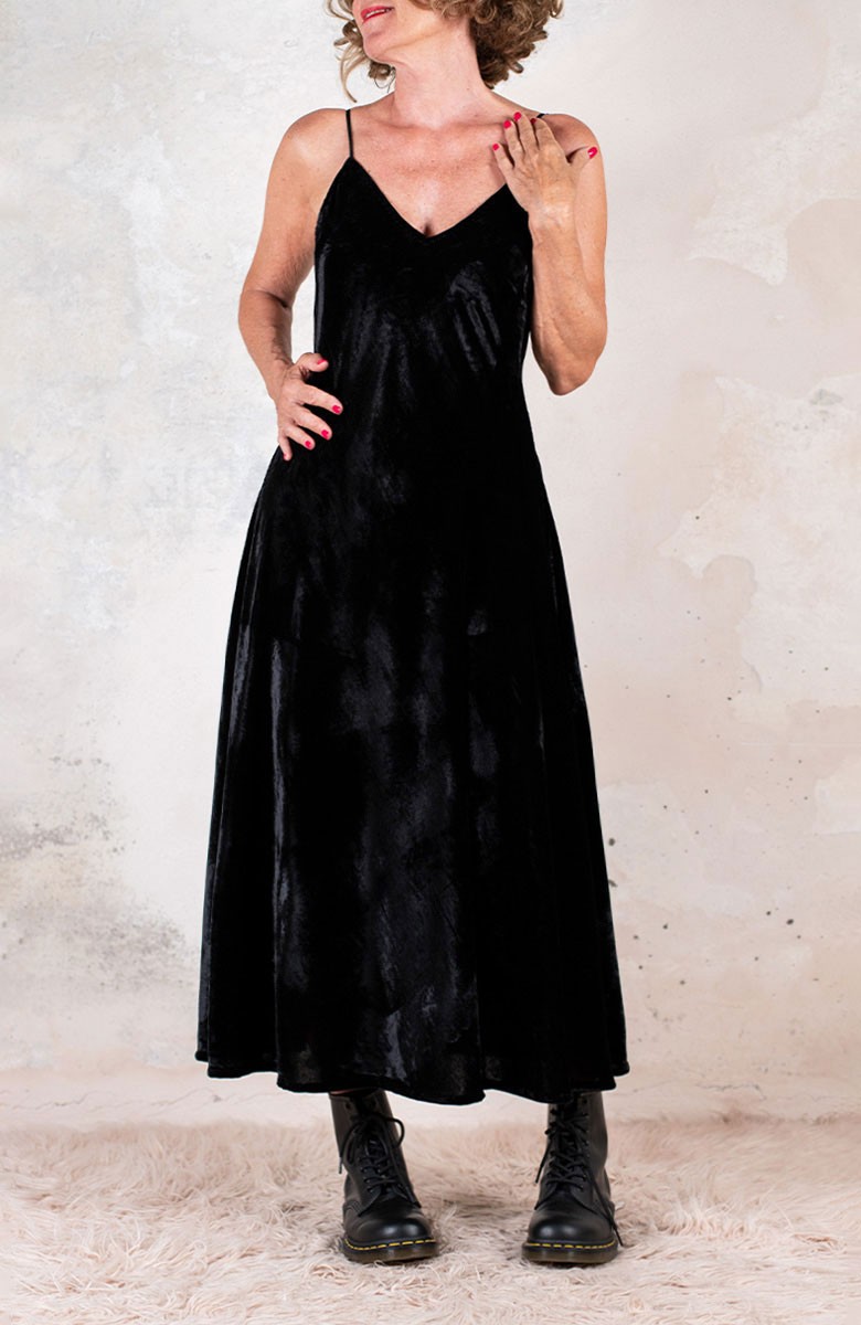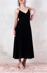 La Hybrid Velvet Perfecta Sottoveste è un abito di velluto morbido e fluido. Il suo nome già la definisce. È un perfetto ibrido tra la Perfecta Sottoveste, di cui ha lo stesso scollo e le stesse spalline sottili e regolabili, il Perfecto Dress, di cui conserva la forma e i volumi della parte sotto, e il Perefctoful Dress, con cui ha in comune l’inserto triangolare sul fondo davanti ispirato agli abiti sartoriali degli anni Venti. È tagliata in sbieco per poter scivolare sulle forme, senza segnarle, è rifinita con i punti a mano. La puoi indossare anche con sotto una sottile t-shirt con le maniche lunghe e sottili nei giorni più freddi. Lei sarà la tua complice prediletta per essere tutte le mille te che sono in te.