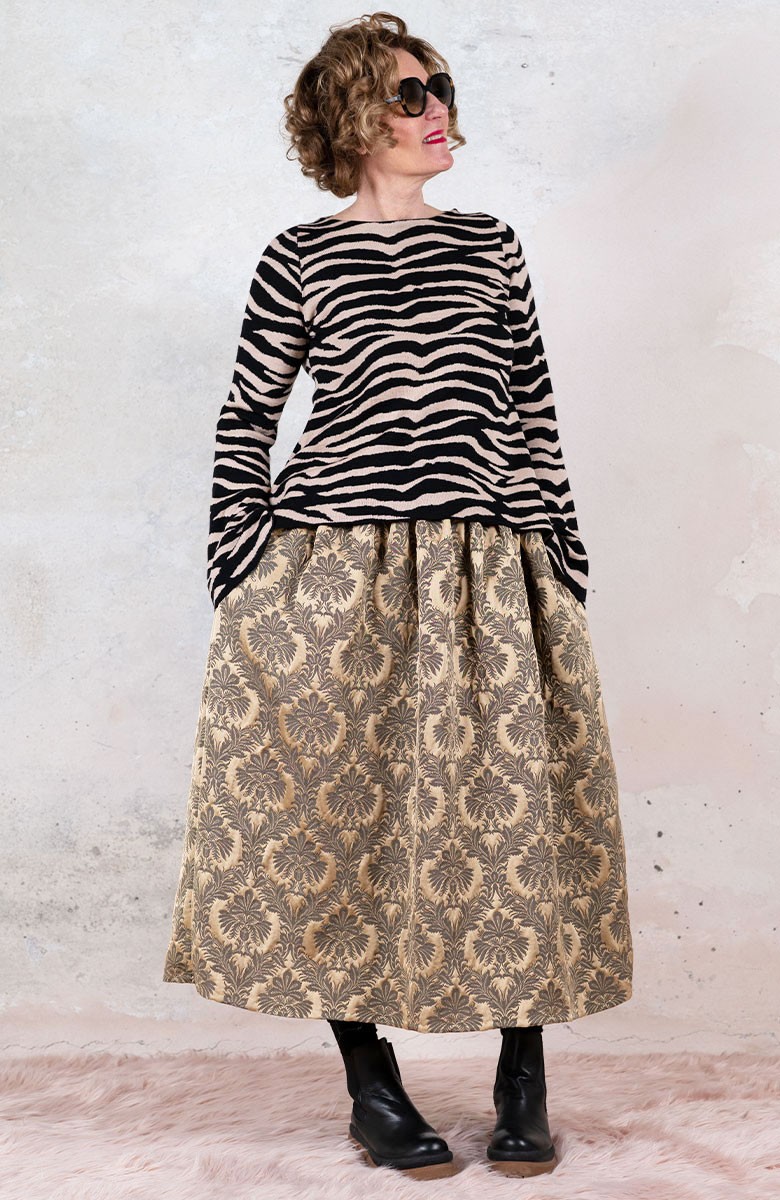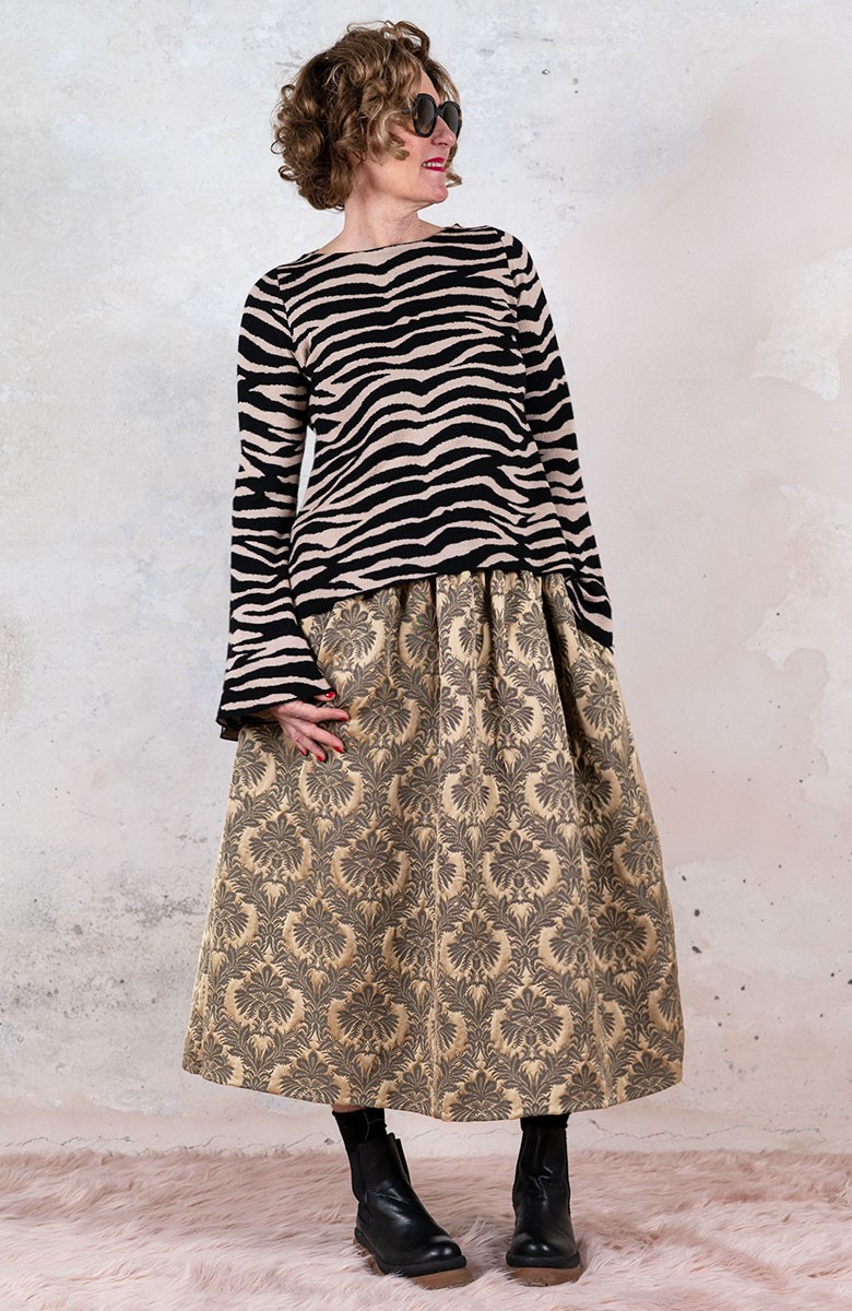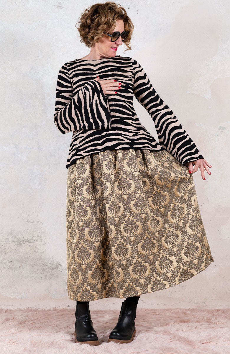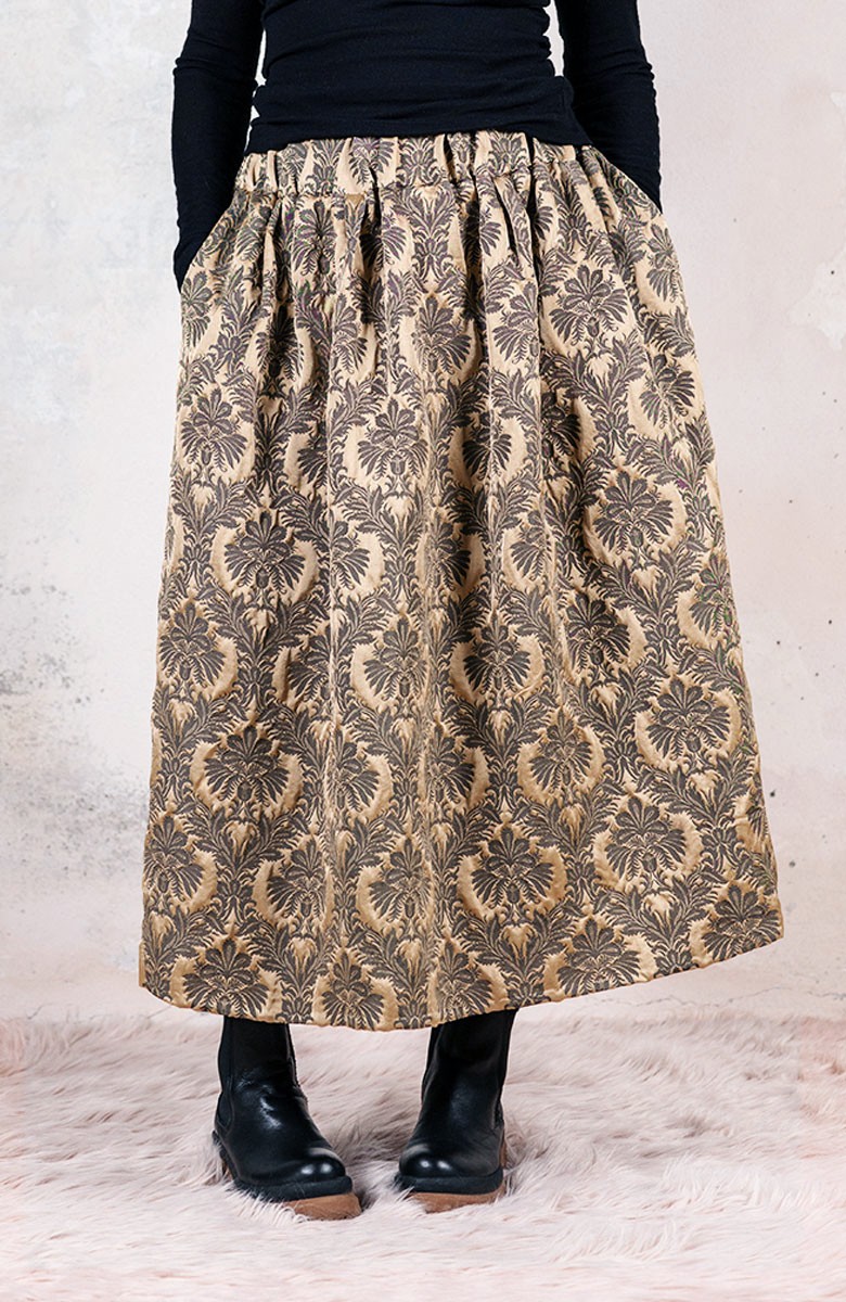 GRAPHIC BROCADE TRAVEL SKIRT - Precious Gold
