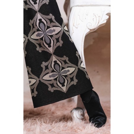 Sono più comodi della tuta più comoda. Sono più femminili di un tacco 12, di un rossetto rosso, di uno chignon. Creare un pantalone di maglieria che soddisfacesse sia l’estremo bisogno di comfort, che il desiderio irrinunciabile di femminilità, è un’ardita scommessa vinta. Lo studio millimetrico della forma (svasata al fondo) e delle linee (svuotate nell’interno gamba); il fianco unito; la cintura liscia, alta, sagomata e cucita a rimaglio che allontana il rischio di arricciature disarmoniche; il posizionamento del disegno jacquard, fanno di lui il pantalone da vera comodiva. Indossarlo significa non toglierlo più. Qualsiasi sia il momento in cui lo farai. Silvia la ripose nell’ Archivio: sapeva che un giorno quel suo disegno microscopico, di cui si era innamorata, l’avrebbe ispirata. Era una cravatta vintage, era rossa, era di seta. Silvia la scelse tra tante a un mercatino. Composizione e manutenzione