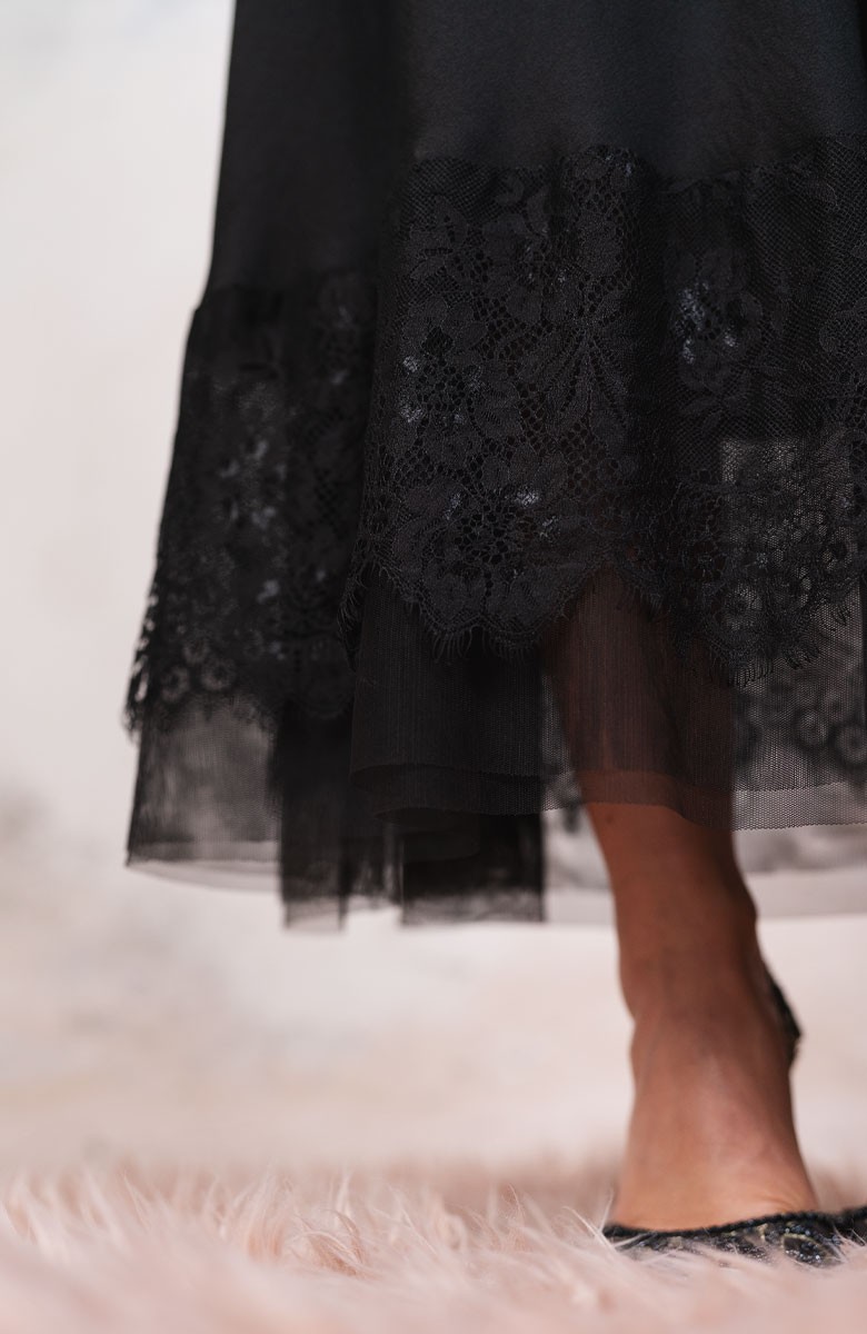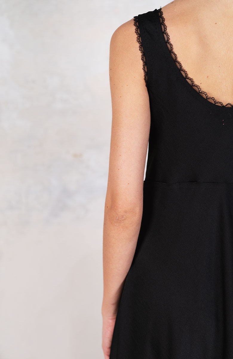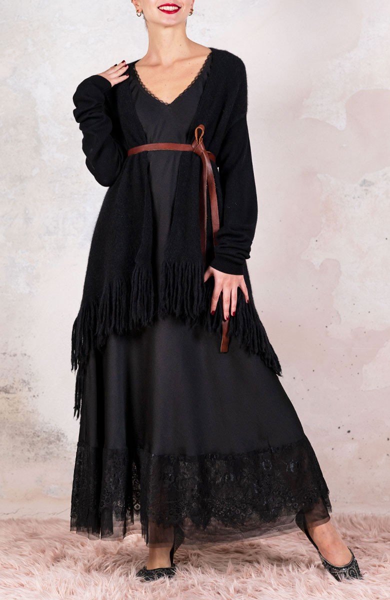 L’abito iconico di Raptus&Rose, l’abito sartoriale da viaggio, l’abito gentile con tutti i corpi delle donne, debutta nella sua nuova variante con il pizzo: incrostato al fondo per impreziosire le caviglie; lungo lo scollo e il giromanica per ingentilire il decolté.