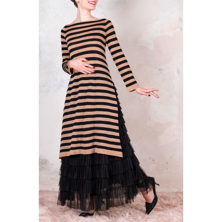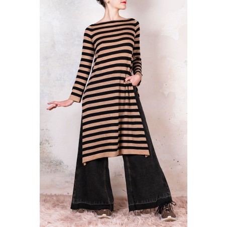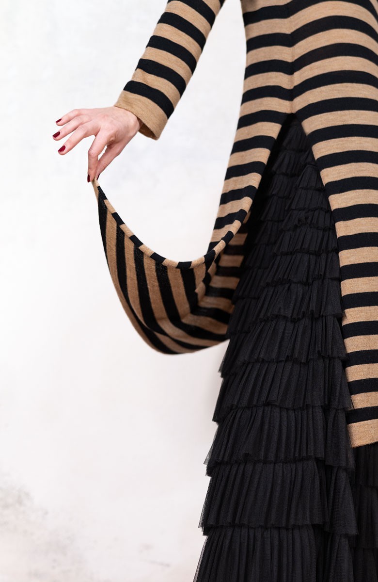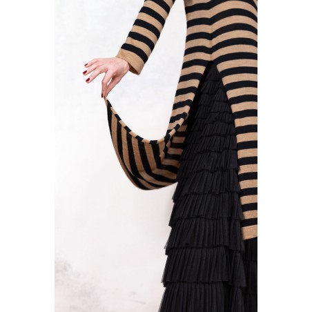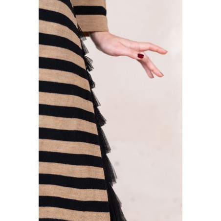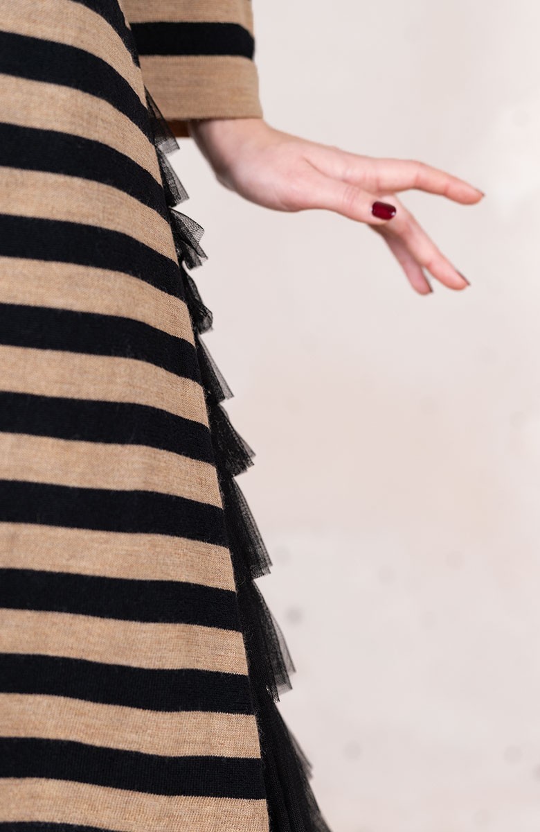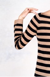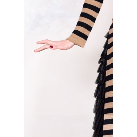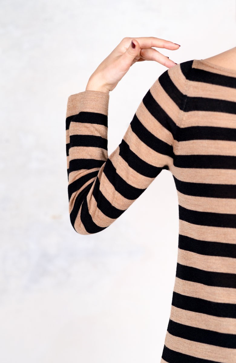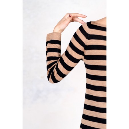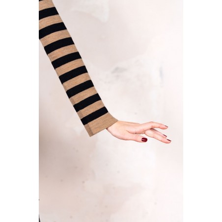 WOOL STRIPED DRESSWEATER - Black&Caramel